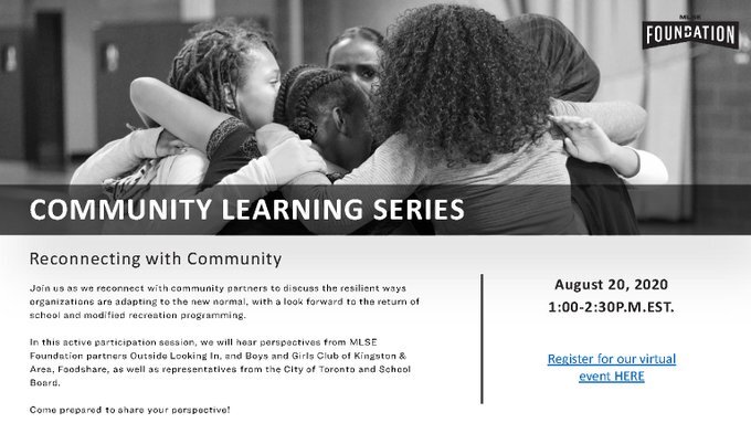 As part of their Community Learning Series webinar, join the MLSE LaunchPad as they reconnect with community partners to discuss the resilient ways organizations are adapting to the new normal, with a look forward to the return of school and modified recreation programming. In this active participation session, you will hear perspectives from MLSE Foundation […]