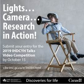 The CIHR Institute of Human Development, Child and Youth Health (CIHR-IHDCYH) is pleased to announce the 2019 round of their IHDCYH Talks video competition with a first place prize of $3,000.